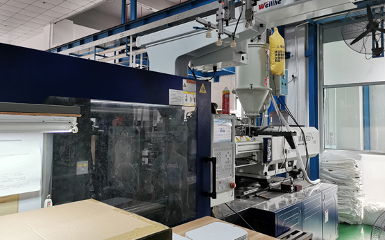 All of our injection machines are equipped with B screws (fit for PC material) and servo systems which allow us to make small productions. The 250T machine has already assembled with robot arms. More will be done in near future.